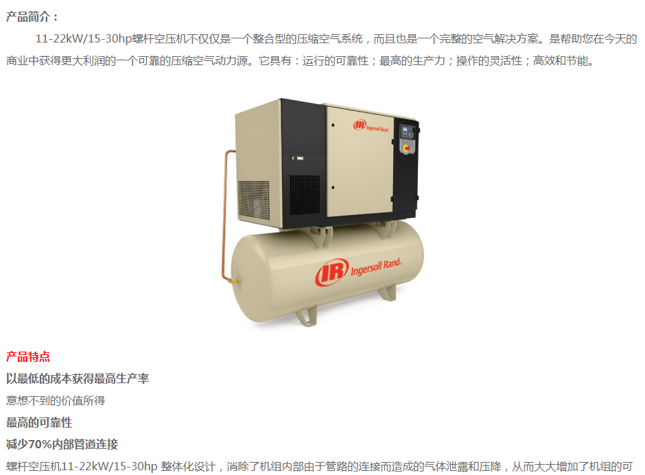 英格索蘭螺桿式空壓機 R系列11-22KW