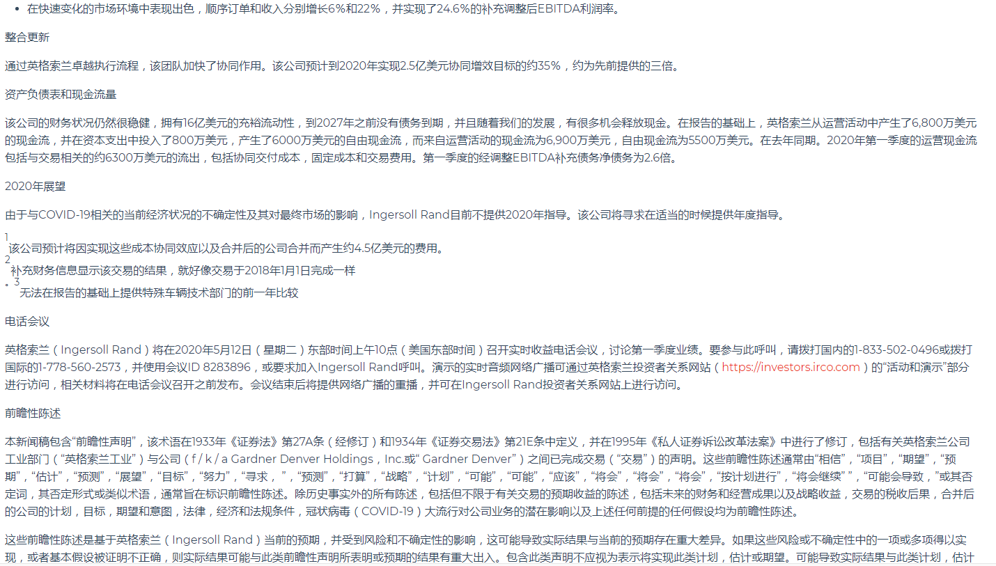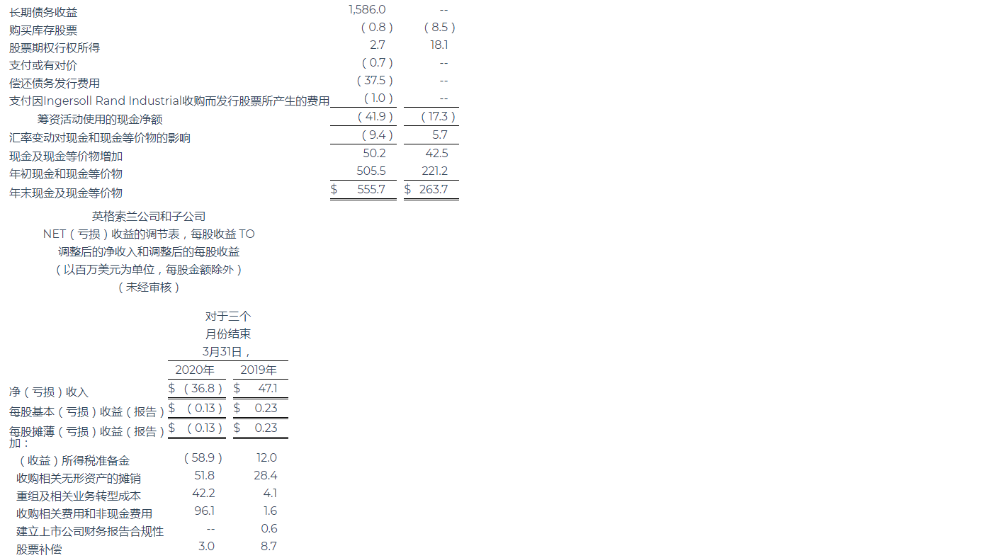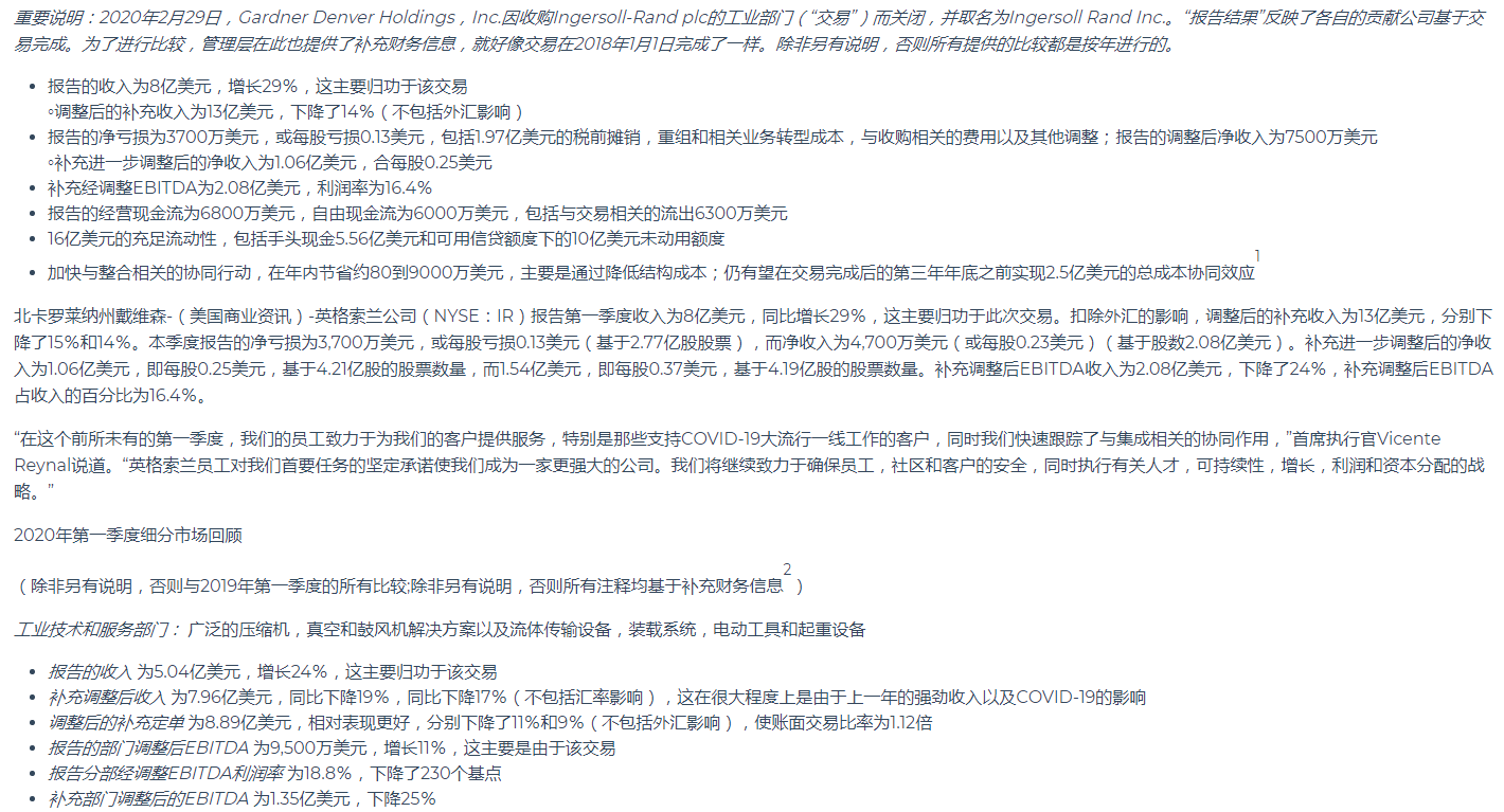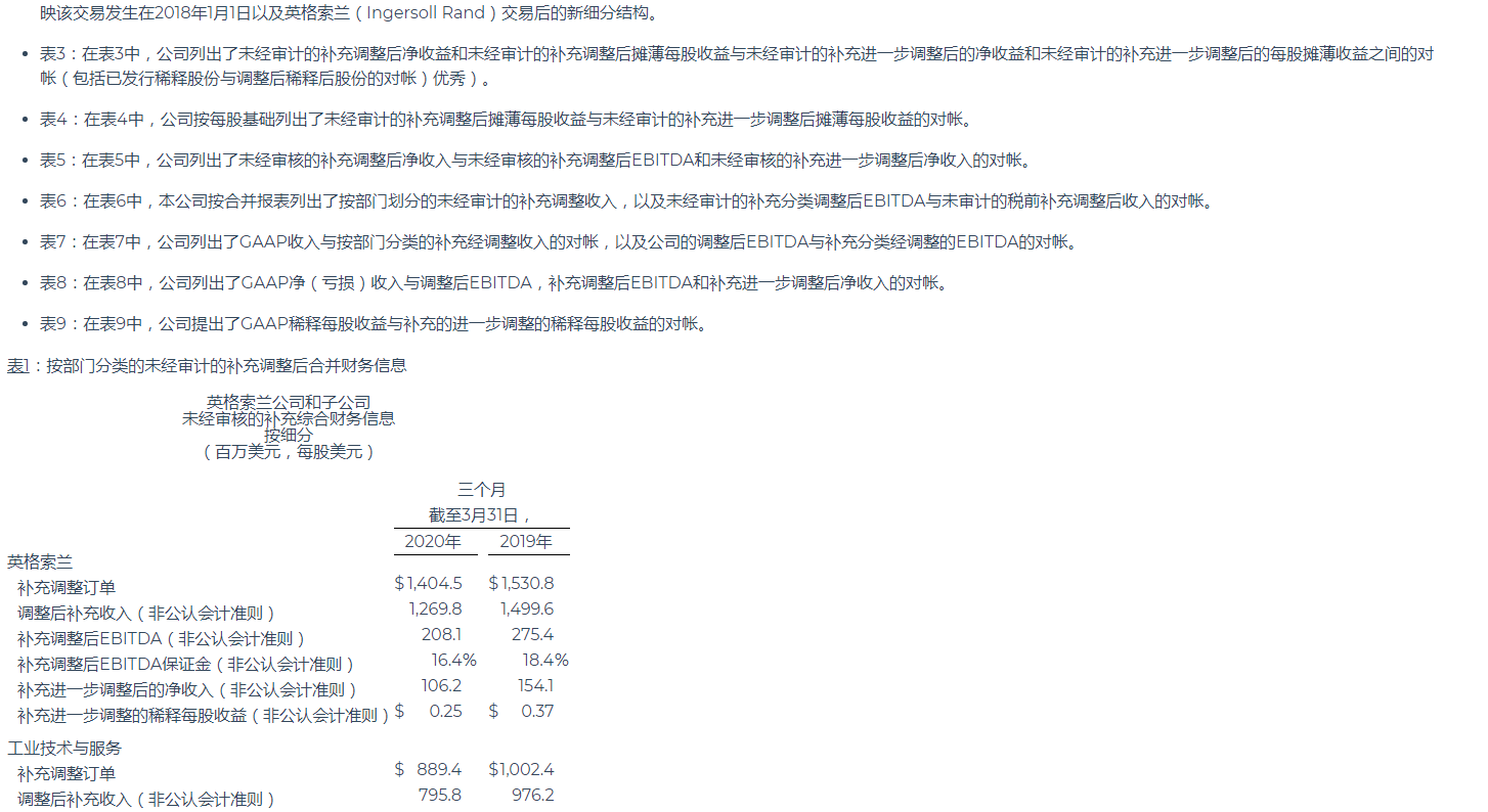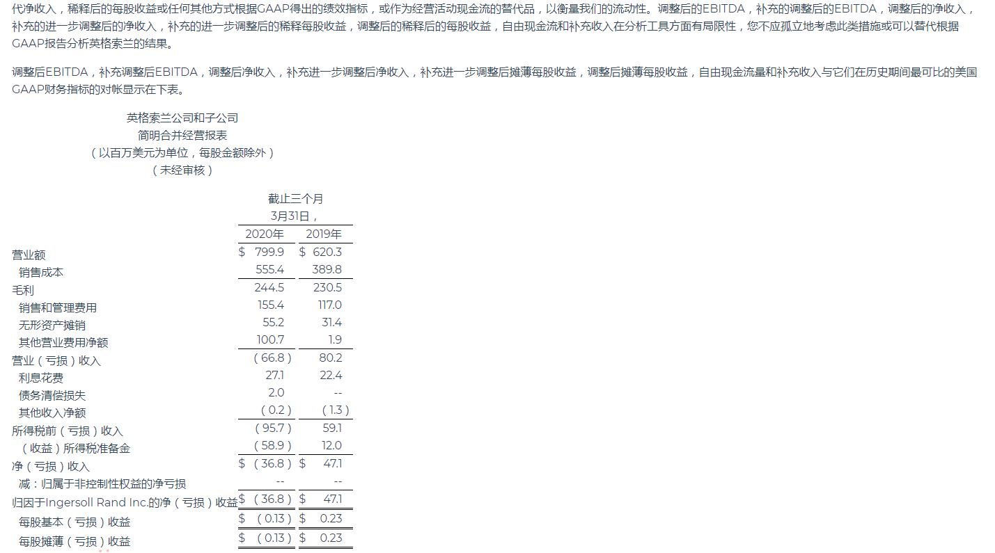 英格索蘭公布2020年第一季度業(yè)績(jī)
