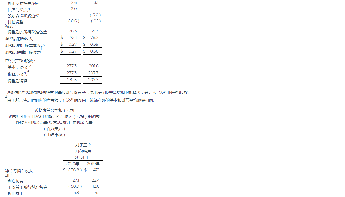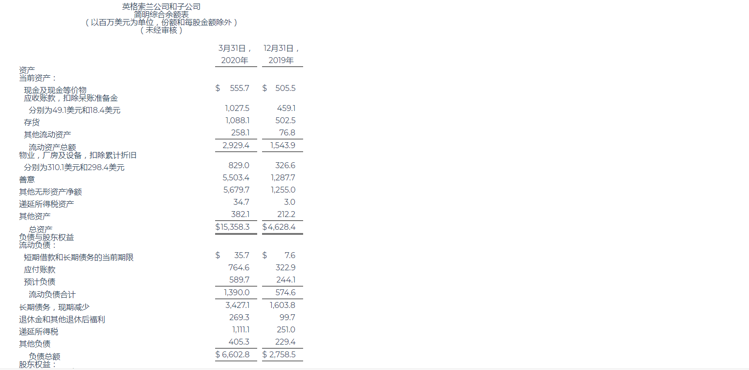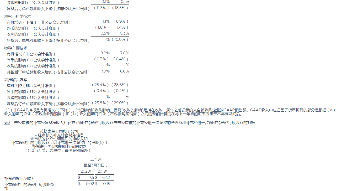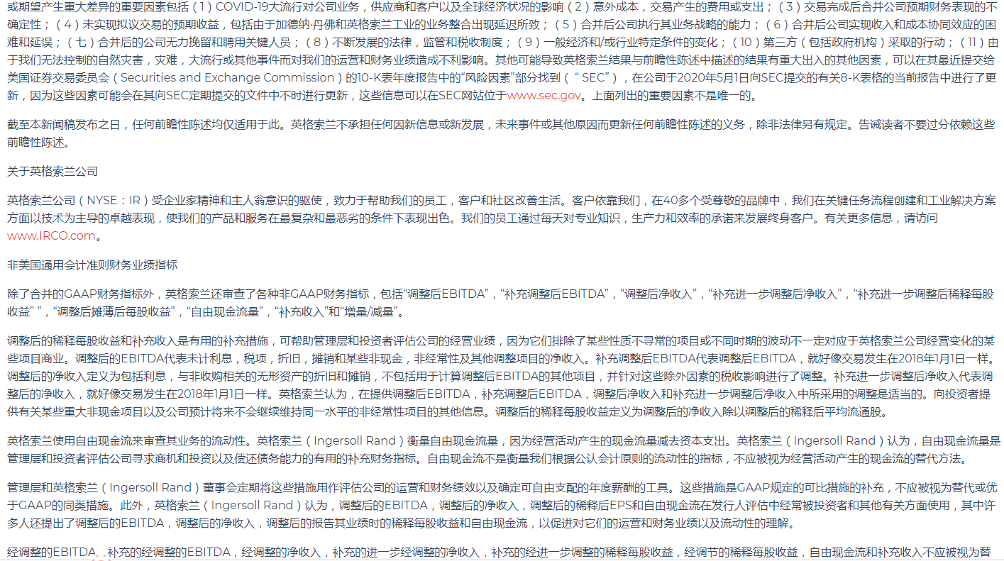 英格索蘭公布2020年第一季度業(yè)績(jī)